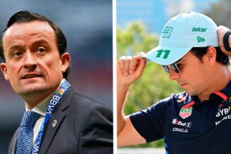 Vestido con la chamarra de Red Bull, en alusión para apoyar a…